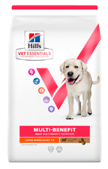 Hill's Vet Essentials Multi-Benefit Adult 1-5 Large Breed Hondenvoer met Lam & Rijst is voeding met meerdere gezondheidsvoordelen. Dit voer is exclusief verkrijgbaar bij de dierenarts en is samengesteld om een gezonde spijsvertering en het algemeen welzijn te bevorderen.